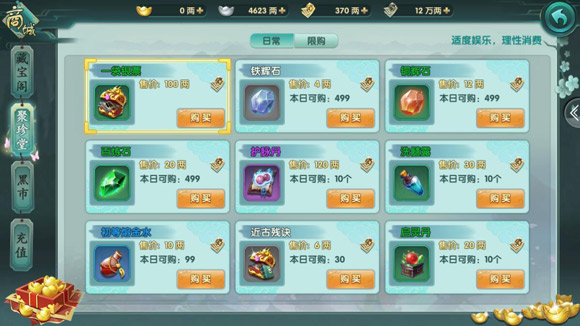 银子是游戏中可以用于交易的重要货币,玩家可以用其在拍卖行中购买其他玩家出售的道具,经常可以在拍卖行中买到让人意想不到的惊喜。想要获得更多的银子,需要进入商城通过藏宝阁进行购买。